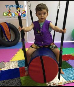 LUCCA, 4 ANOS - Na terapia de integração sensorial com o Weigth Vest. Colete de peso variável. Que pode ser usados em atividades que necessita de maior concentração e atenção.